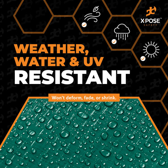 Keep everything you own safe with Xpose Safety! Our Heavy Duty Green and Black Tarp will be a much needed addition to your home or business for all sorts of safety and general protection necessities. With our tarps you will rest easy knowing your equipment and belongings are safeguarded from inclement weather and other hazards that can damage your precious items.