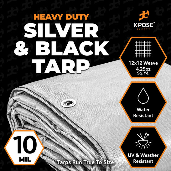 Xpose Safety tarps are made with the highest quality polyethylene, which is a form of plastic that is heavy duty. It is lightweight yet durable simultaneously which is an excellent quality - 10 mil thickness means it is crafted to be durable. Works amazingly well in the outdoors - Covers Cars, Boats, Motorcycles, Roofs, Lawns, Barbecue Grills, Benches, and More! Keep your belongings safe from harsh weather conditions when heavy rain and blizzards come around. grommets on the edges every 18 inches so you can easily tie it down on a surface.