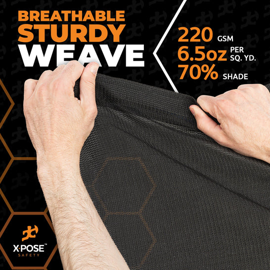 Black Mesh Double-Stitched Polypropylene Hems Provides 60% Shade Water, Weather, and Tear Resistant Solid Brass Grommets Every 2 Feet and Each Reinforced Corner Provides Great Coverage for Trucks, Pools and More Use as Shelter or Shade on Lawns, Sport Facilities, Canopies and More Use as Fence for Yards, Gardens, Chicken Coops, Barns and Animal Shelters Xpose Safety Premium Tarps Run True to Size.