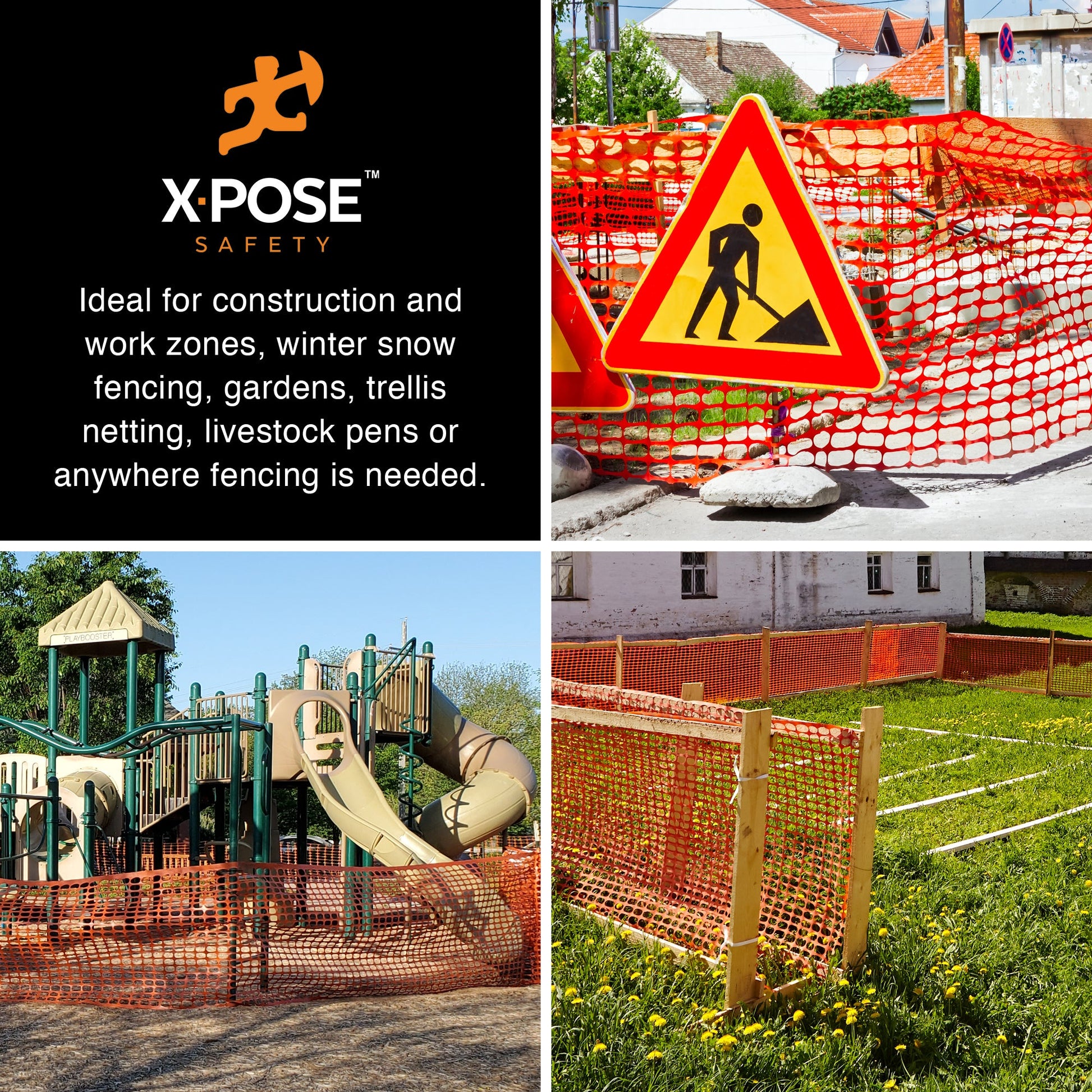 Create a visible, protective boundary with the Xpose Safety Visual Barrier Fence. This 4-foot-high safety netting is ideal for securing areas around your home, garden, or job site. Its bright orange color acts as a clear warning while offering a quick and effective way to keep out people, animals, or unwanted traffic.